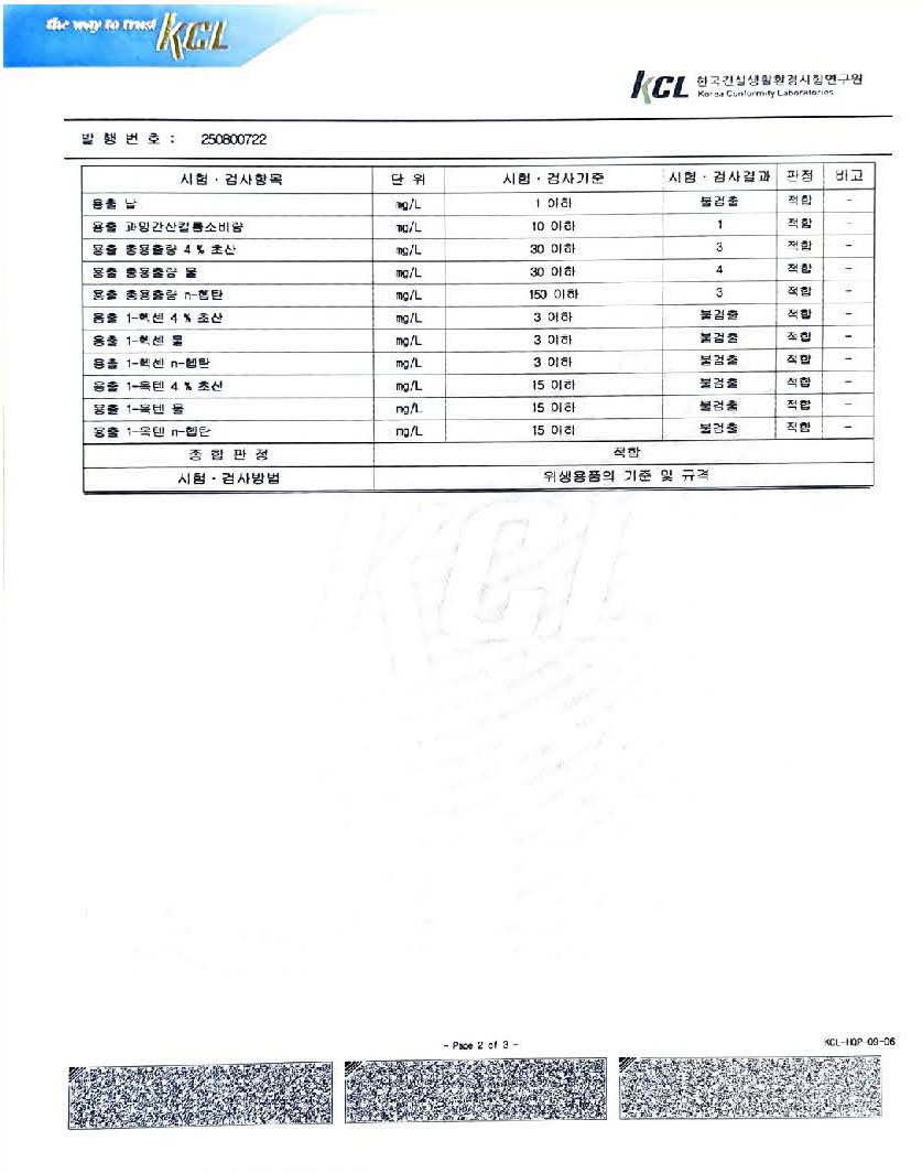 KCL 시험검사 결과표
